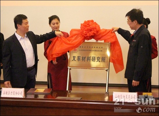 日前,安徽合力叉車薛白總經理率公司研發、質量、資材等部門相關負責人出席安徽合力叉車與山東鋼鐵股份有限公司萊蕪分公司合作共建“叉車材料研究所”簽字暨揭牌儀式。