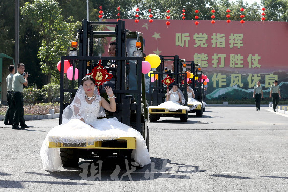 奔馳、寶馬迎親不稀奇,自行車、公交車,馬車車隊迎親有新意,可你見過開著滁州叉車迎親的嗎?在人民解放軍某部隊,就舉行了這么一場“霸氣側漏”的集體婚禮。 看滁州叉車如何霸氣?軍營集體婚禮如何演繹“你們城里人真會玩”!