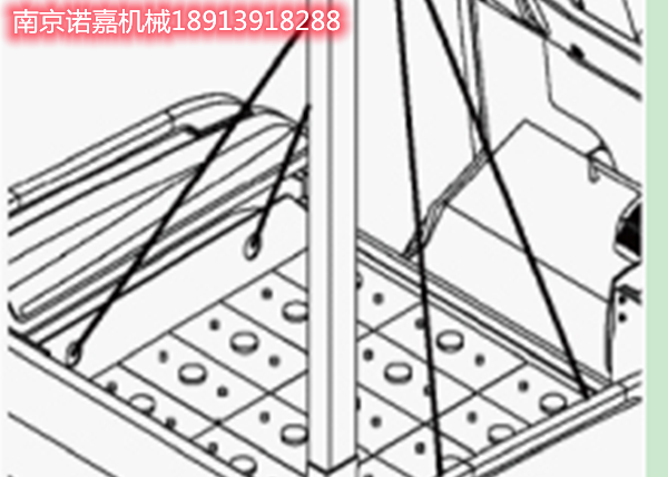 注意找到南京電動叉車電瓶的安裝與拆卸示范箱的四個吊鉤孔,將其掉的繩子或繃帶