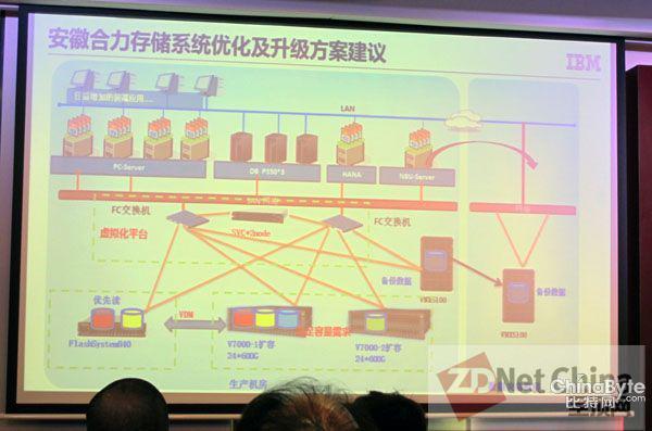 據合力叉車信息技術研究所副所長王宏宇介紹,公司的核心業務系統是SAP、ERP和PLM,其中ERP項目于2012年1月上線,PLM項目于2013年7月上線。ERP系統基礎架構采用了IBM小型機加存儲,由3太P550主機、2臺V7000存儲系統組成。生產系統中包括1臺IBM V7000作為主存儲,1臺磁盤機柜滿配24塊600GB硬盤。
