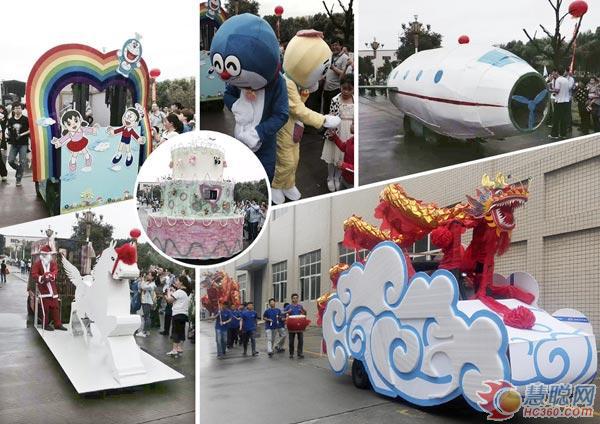 活動以精彩的“叉車秀”開場,凱傲寶驪生產的不同型號的叉車被員工們精心裝扮成不同樣子、不同主題的花車,有金龍騰云、奔馬馳騁、彩虹蛋糕、哆啦A夢,更有改裝后的波音747以及航空母艦。