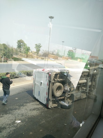網友南京叉車用戶爆料:棲霞大道這邊一輛車側翻,也不是因為碰撞,就這么自己翻了。我們車司機說是因為前面那輛灑水車……導致的地面打滑…