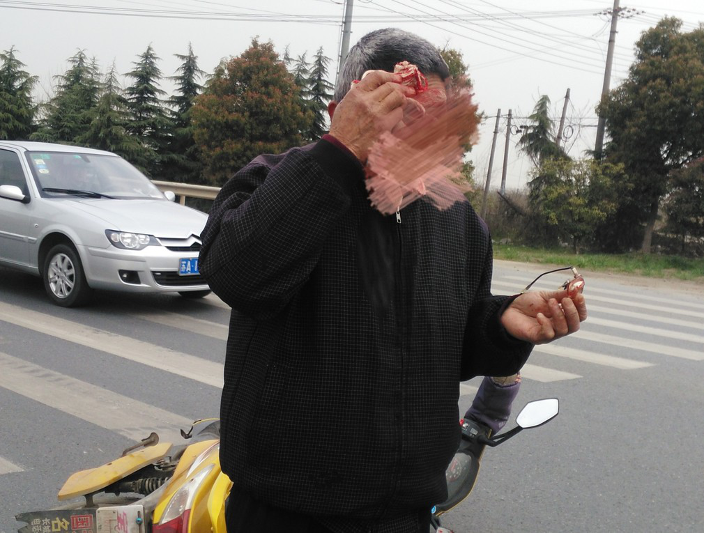 南京電動叉車:老人騎電瓶車上路 緊急剎車摔得頭破血流
