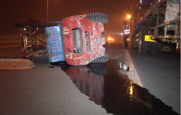 11月19日晚上23:20分左右,淮安市越秀橋上發生驚險一幕,一輛價值100多萬奔馳轎車由南往北行駛過程中突然撞飛同方向行駛的馬鞍山叉車,叉車被撞飛幾十米后側翻在了大橋西北側路面上,由于雙方司機避讓及時,事故沒有造成人員傷亡。