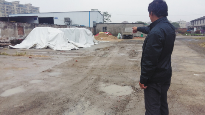 昨天上午,記者來到了“中大”的培訓場地,在椒江機場路邊上,市交管局對面吳葉村的一塊空地,里面雜草叢生,堆放著一些建材,只有中間一條水泥路。