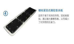 4、螺栓緊固式橡膠墊夾板:通過增大摩擦系數,從而減小對貨物的壓緊力。