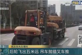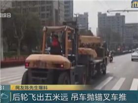 爆料市民陳先生說,當時這輛大型吊車的后輪和車身整個脫離了,四個巨大的后輪離開車體五米多遠,事故也造成了周邊交通擁堵。