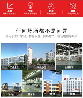 特點就是掃地的時候,不再需要彎腰掃地,清潔人員不用吃灰,同時也使人員的勞動強度