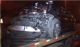 現場奔馳S400轎車已經被清障車拉上了車,奔馳損毀嚴重車頭基本報廢,車內多只安全氣囊彈出,而馬鞍山叉車底盤和發動機損毀嚴重,由于叉車被轎車撞飛導致路面上散落許多碎片,從馬鞍山叉車側翻的橋北位置到橋上撞擊路段距離足足有40多米。叉車被撞時司機迅速避讓這才躲過一劫,目前事故原因有待交警部門做進一步調查。