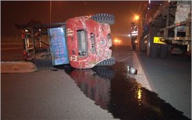 11月19日晚上23:20分左右,淮安市越秀橋上發生驚險一幕,一輛價值100多萬奔馳轎車由南往北行駛過程中突然撞飛同方向行駛的馬鞍山叉車,叉車被撞飛幾十米后側翻在了大橋西北側路面上,由于雙方司機避讓及時,事故沒有造成人員傷亡。