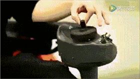 ↑↑通過(guò)旋轉(zhuǎn)小搖桿,控制叉車底部輪子方向