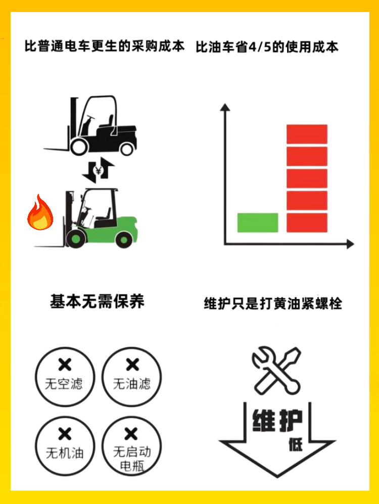 ·性能優異:起升/傾斜、行駛、爬坡性能與內燃車完全相同;